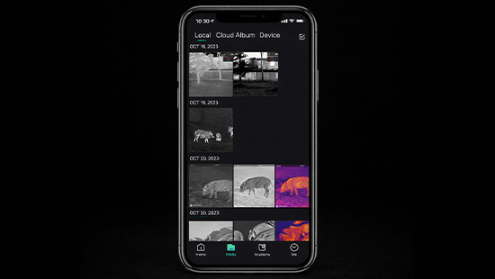 L'écran AMOLED Full HD garanti une observation confortable tandis que les palettes de couleurs thermiques permettent d'adapter l'affichage selon votre environnement de chasse. Le monoculaire intègre également la photo et la vidéo, avec transfert simple via WI-FI et application HIKMICRO Sight.