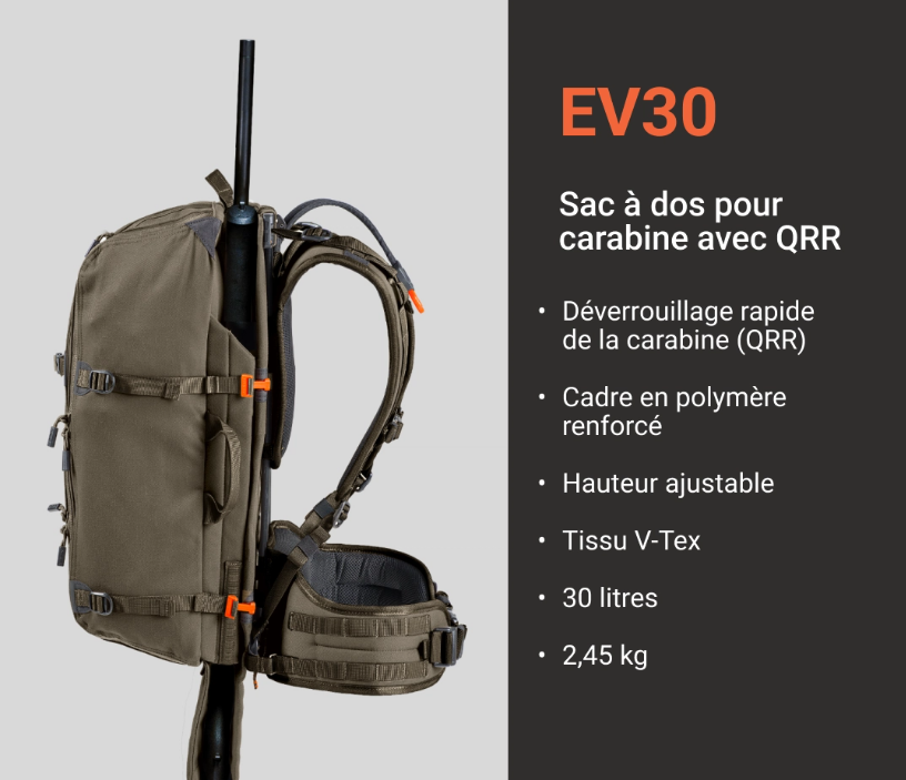 Voici un équipement pour le chasseur : le sac à dos de chasse EV30 Vorn.